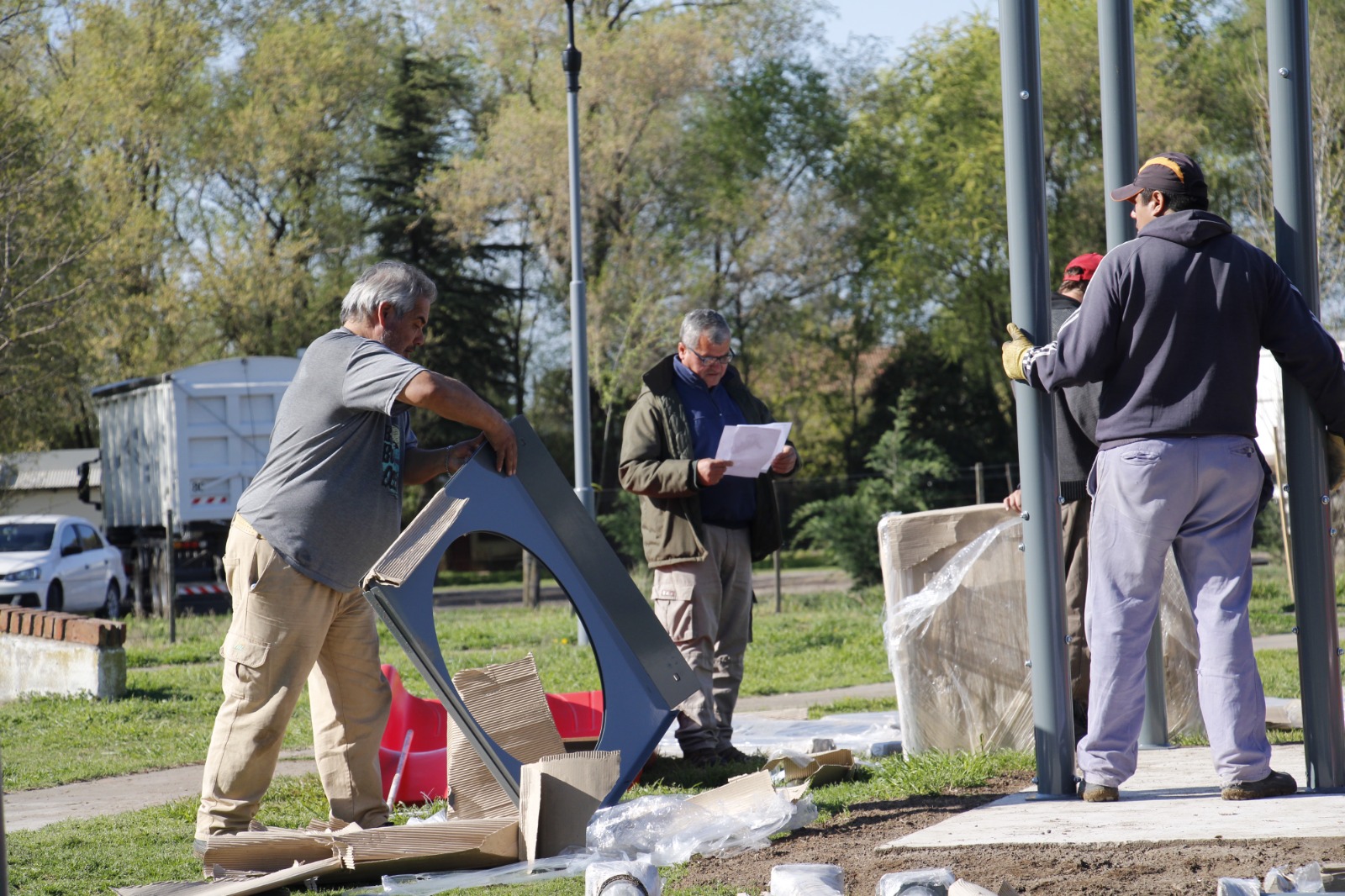 Comenzó la colocación de los nuevos juegos en la plaza de Las Américas