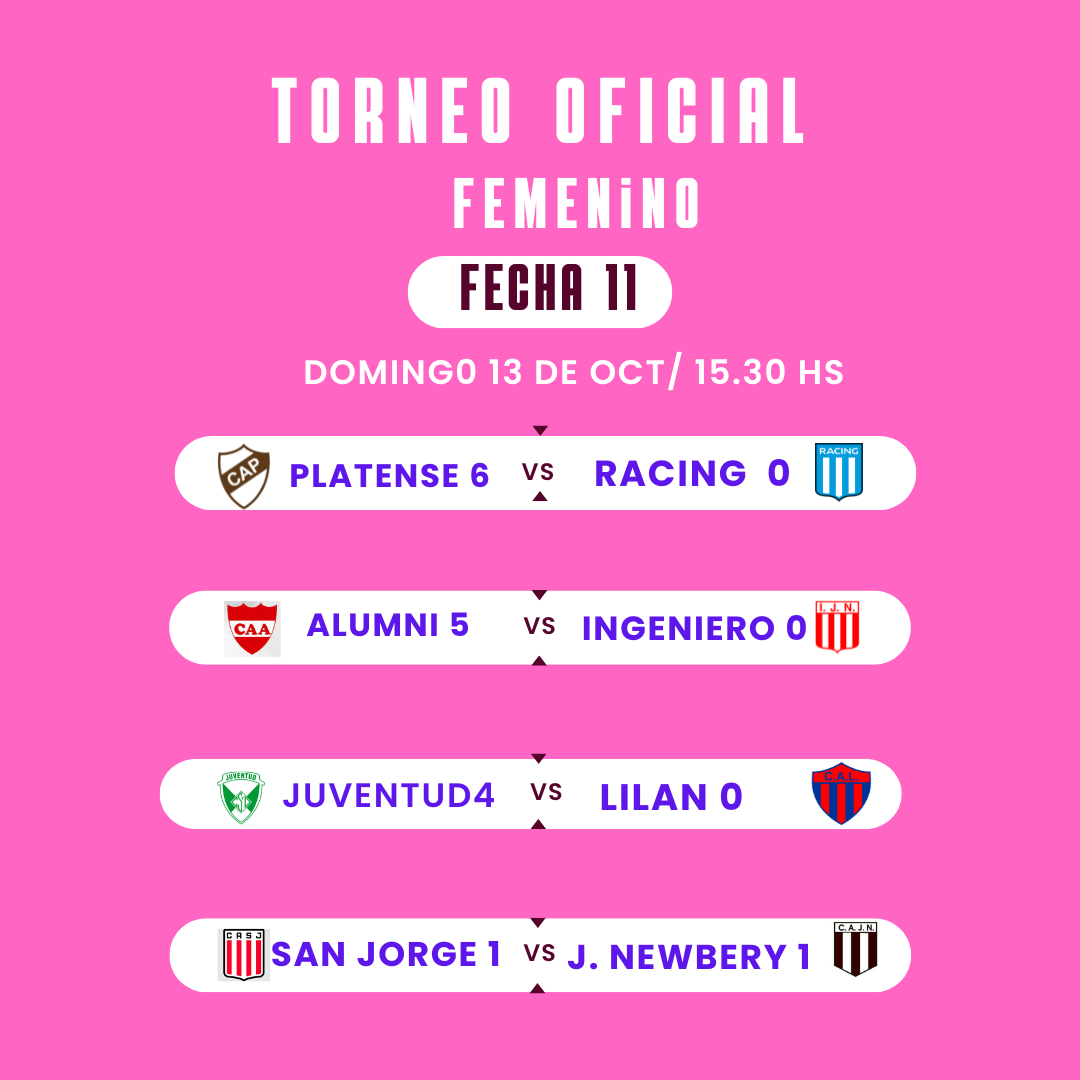 Femenino: Juventud 30; Platense 27; Lilan 19; San Jorge 16; Barracas 13; J. Newbery 9; Alumni 7; Racing 6; Ingeniero 1.