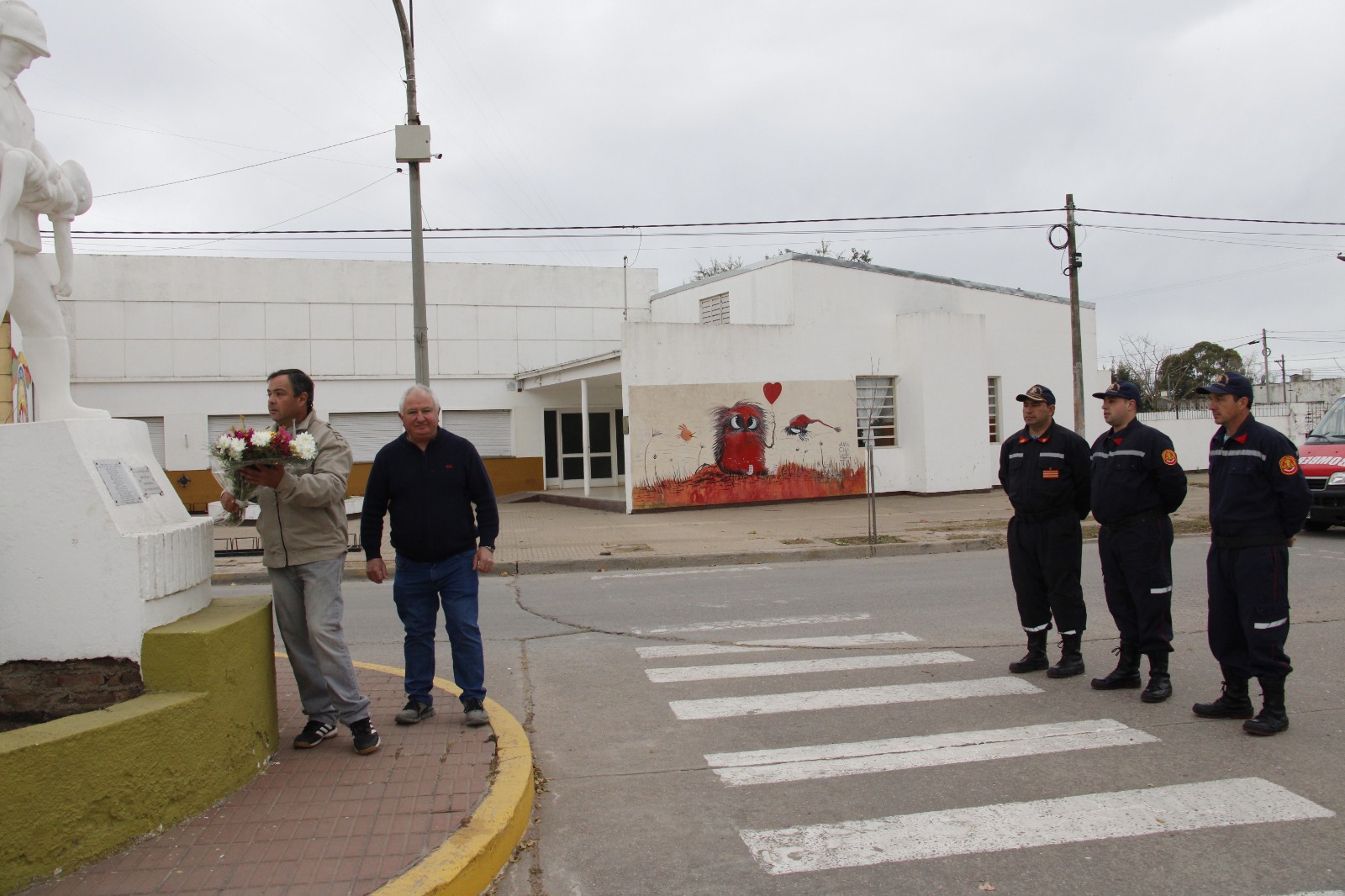 En la mañana se hizo la formación frente al Cuartel, se tocó la sirena en homenaje a los BbVv y se colocaron ofrendas en monumentos.