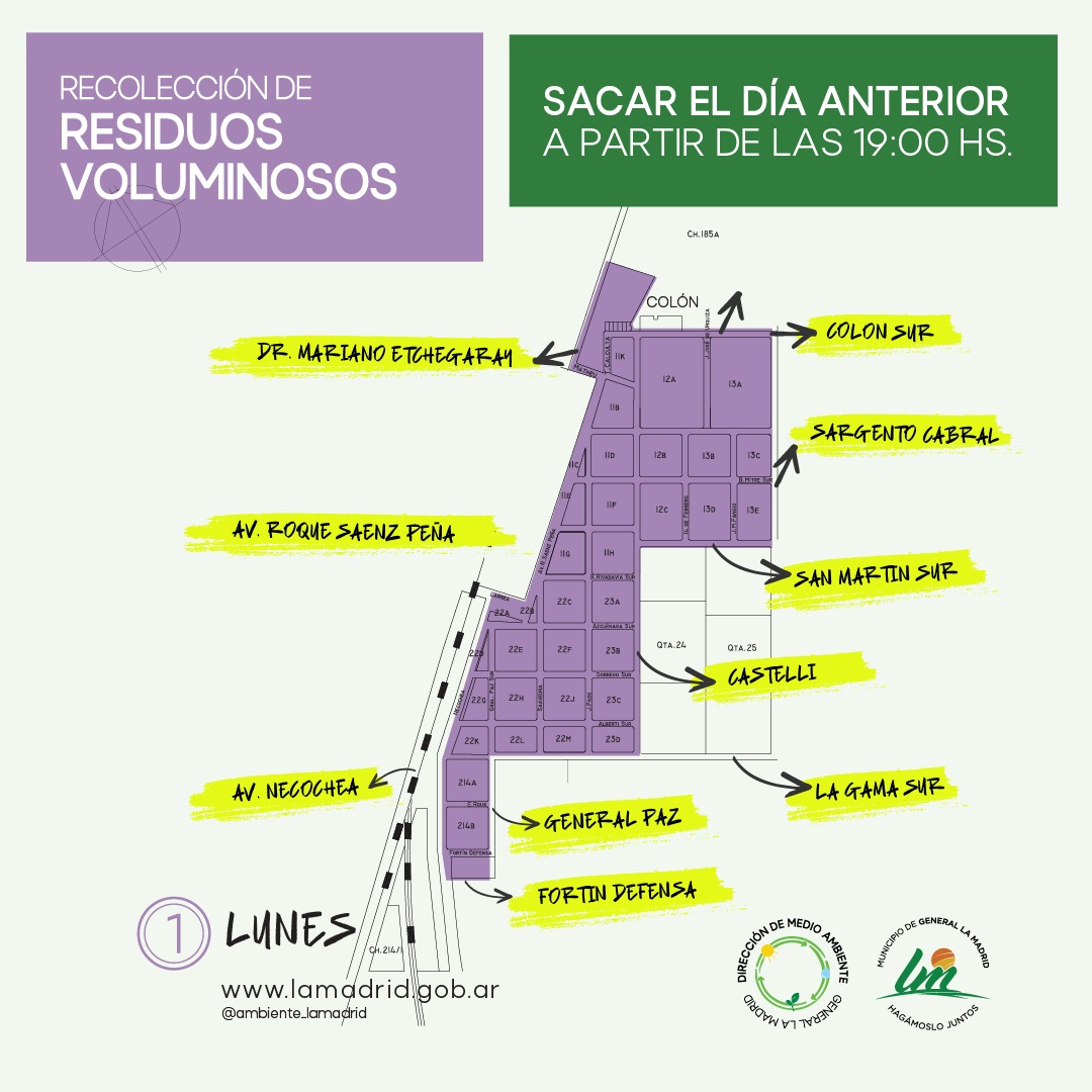 Con el objetivo de mejorar la prestación del servicio de Recolección de Residuos Voluminosos, incrementando su eficiencia en pos de mantener nuestros espacios más limpios y ordenados, a partir del próximo 16 de septiembre se pondrá en marcha un nuevo cronograma de recolección. En imágenes vas a encontrar el mapa y el color asignado a cada zona, con el fin de hacer más simple su identificación.