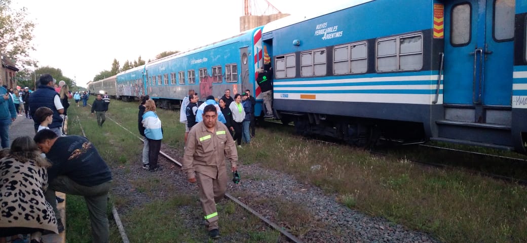 Más de un centenar de lamatritenses esperaban con ansias el arribo y se sorprendieron cuando la formación se paró frente a la estación, pudiendo entregar algo de ayuda y donar algunas bebidas a los viajeros.