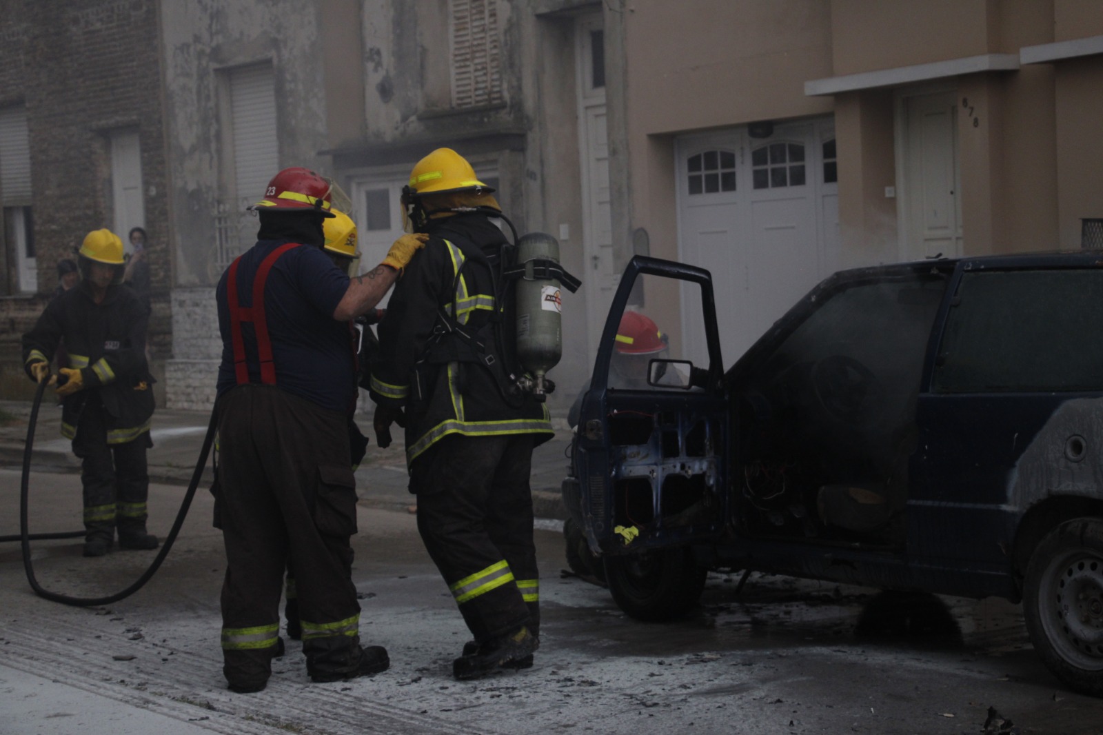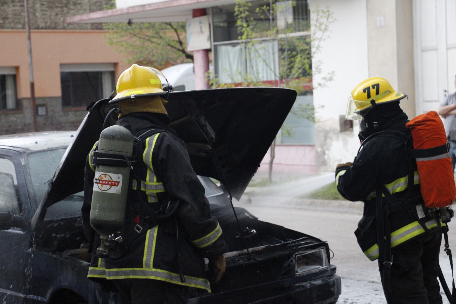Por la tarde, un auto comenzó a prenderse fuego y fue necesaria la intervención de los Bomberos Voluntarios pero a pesar del trabajo de los servidores públicos las pérdidas fueron importantes.