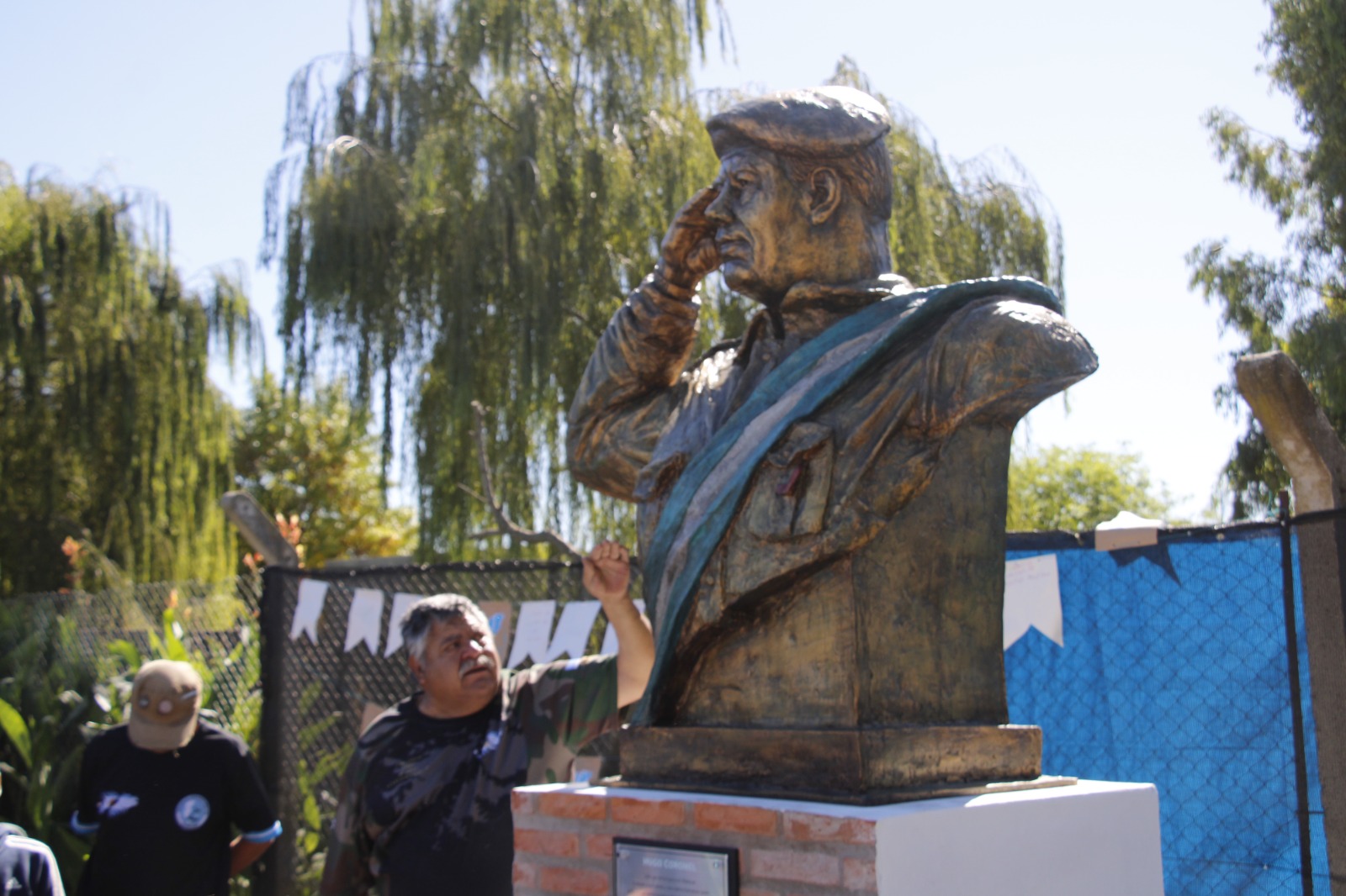 Además hizo uso de la palabra el intendente Martín Randazzo quien recalcó que “Hugo está vivo en sus valores y acciones”. Por unos instantes le cedió el micrófono a Roppo Marsch, el autor de la obra, quien contó cómo fue el proceso para realizarla. Nuevamente el mandatario habló ante el público y cerró sosteniendo que “no hay guerras justas porque los que las hacen, lo hacen por intereses propios y no pensando en los soldados”.