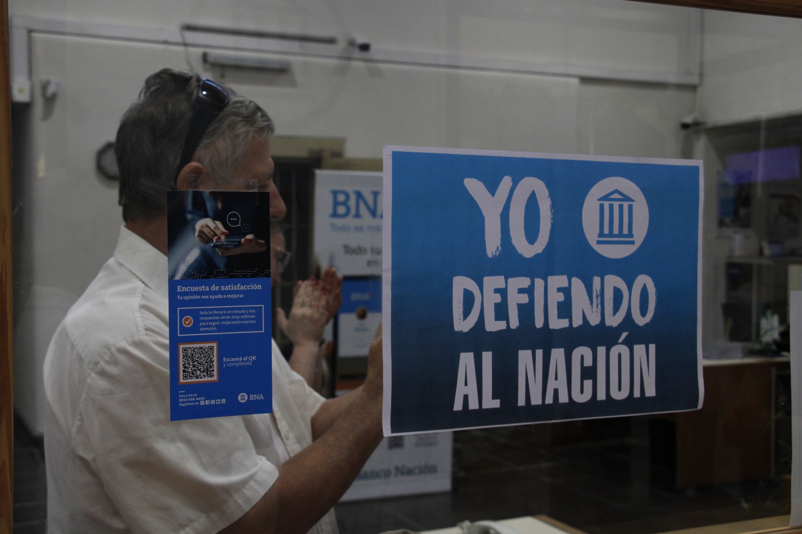Minutos después de las 11 de la mañana se hizo el reclamo en el hall con aplausos -mientras continuó la atención al público-.